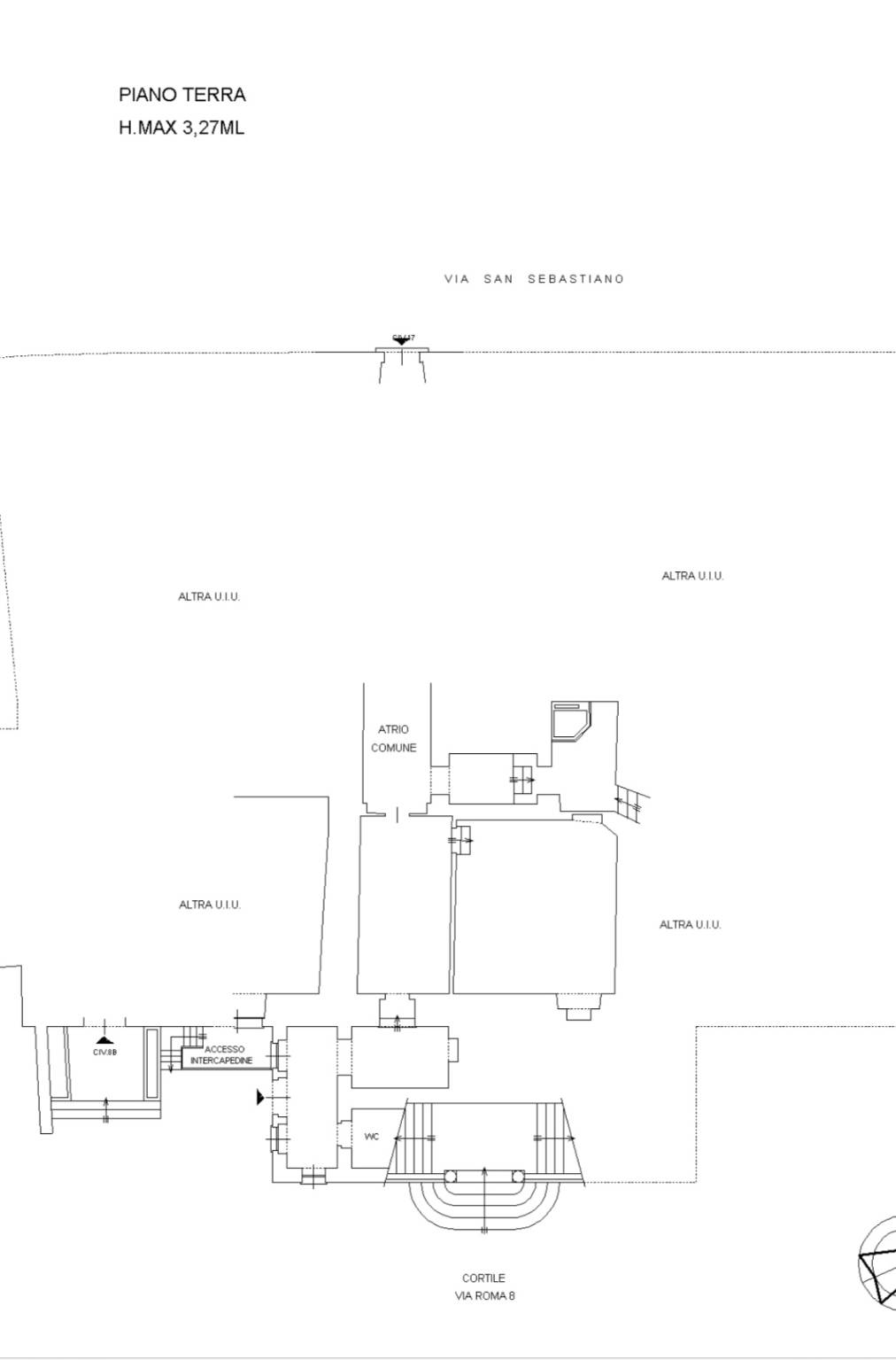 L'immobile ha accesso sia da Via San Sebastiano sia da Via Roma dove troviamo, disponibile a parte, un posto auto scoperto.